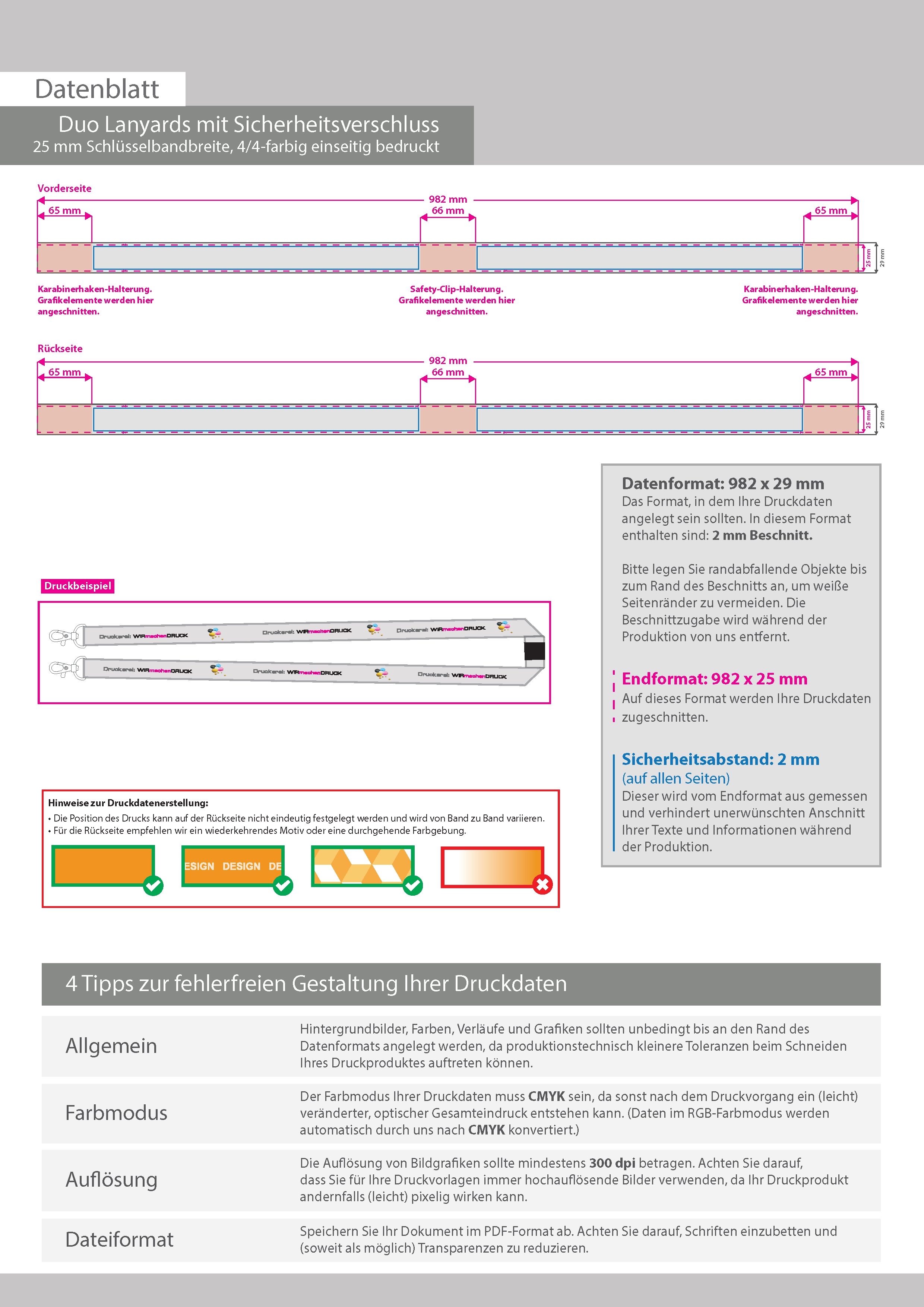 Duo-Lanyards mit Sicherheitsverschluss, 25 mm Schlüsselbandbreite, 4/4-farbig beidseitig bedruckt